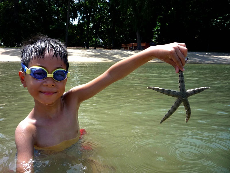 I caught a common Sea Star for Caleb! Quite cool! The starfish was wriggling and bending backwards as if to grab my hand..yeeks..so creepy!